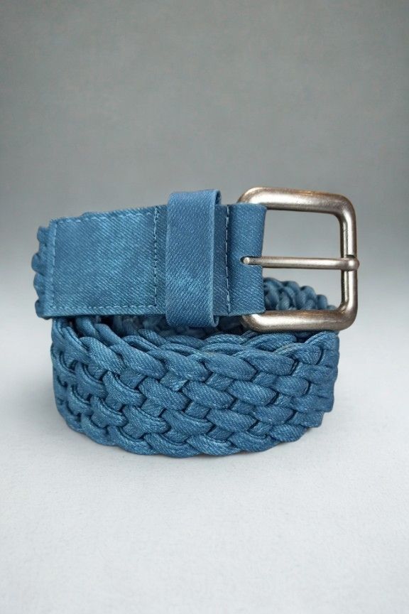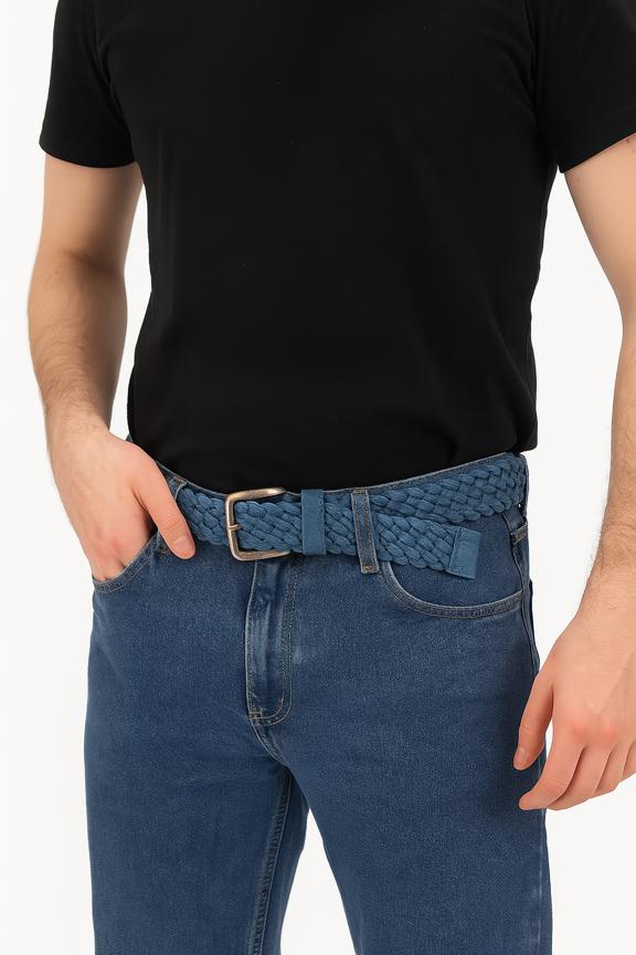 Ανδρική πλεκτή ζώνη από οργανική δερματίνη σε ντένιμ υφή και χρώμα.
