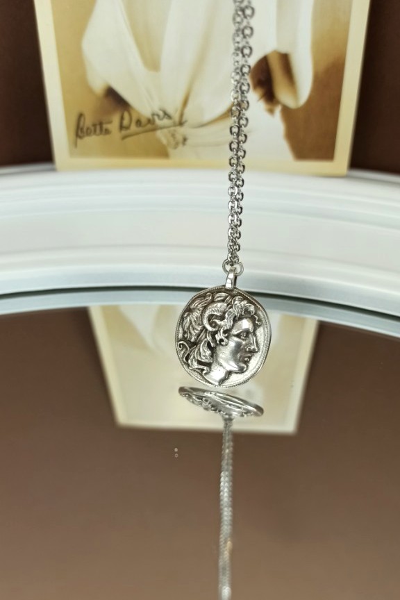 Ατσάλινο Κολιέ διπλό ανάγλυφο ‘Alexander’ Ασημί