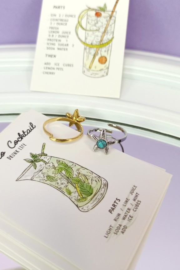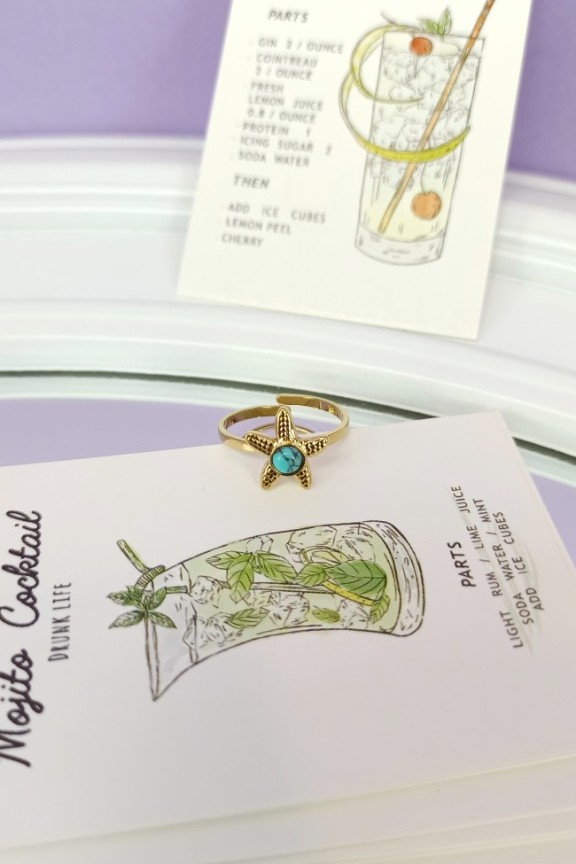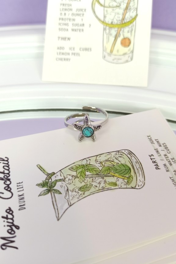 Ατσάλινο δαχτυλίδι αστερίας με πέτρα ‘Crazy Seastar’ Ασημί/Χρυσό