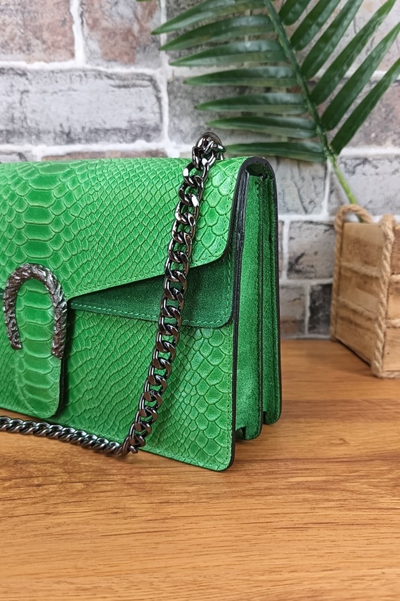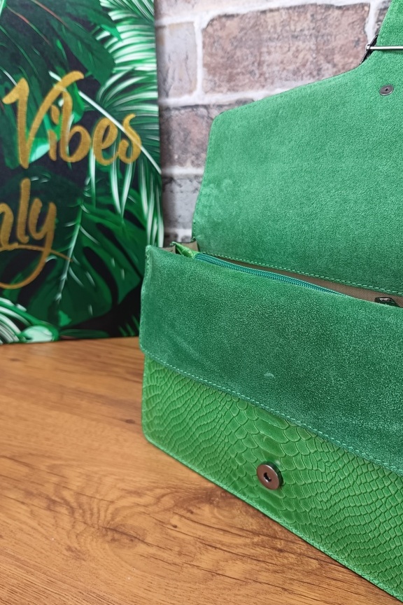 • Χειροποίητη δερμάτινη τσάντα ώμου σε σχέδιο κροκό και σε πράσινο χρώμα σε μεγάλο μέγεθος.