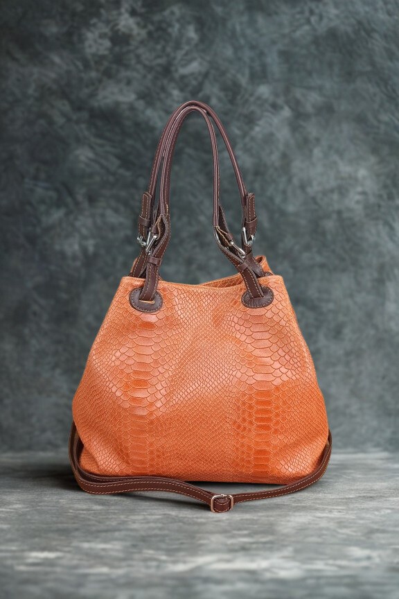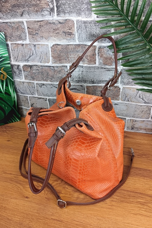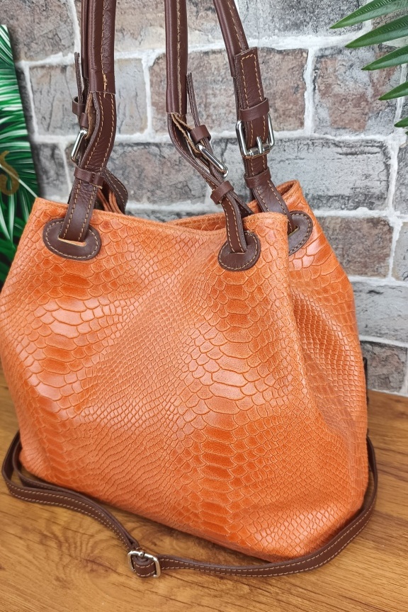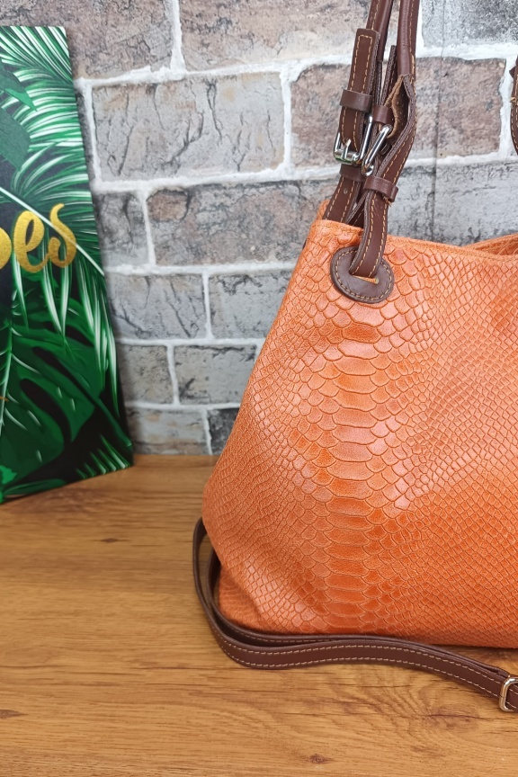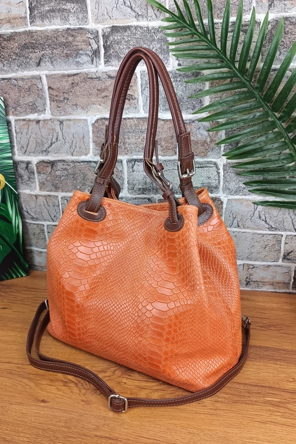 Δερμάτινη τσάντα snake print ‘Venus’ Πορτοκαλί