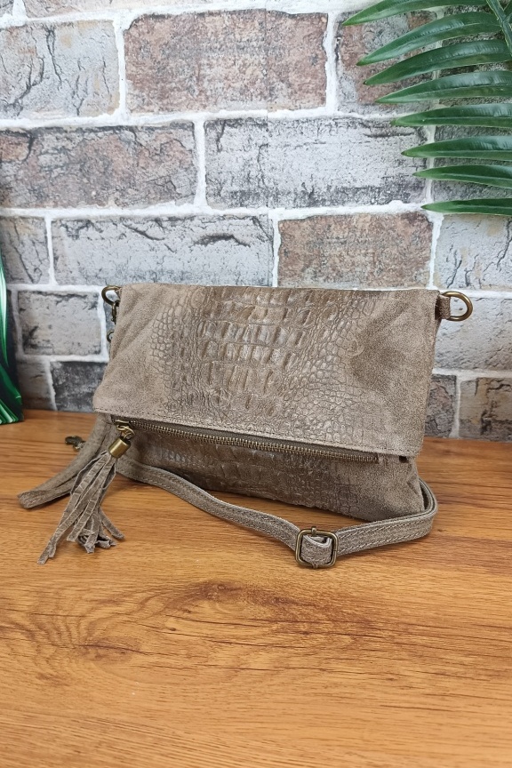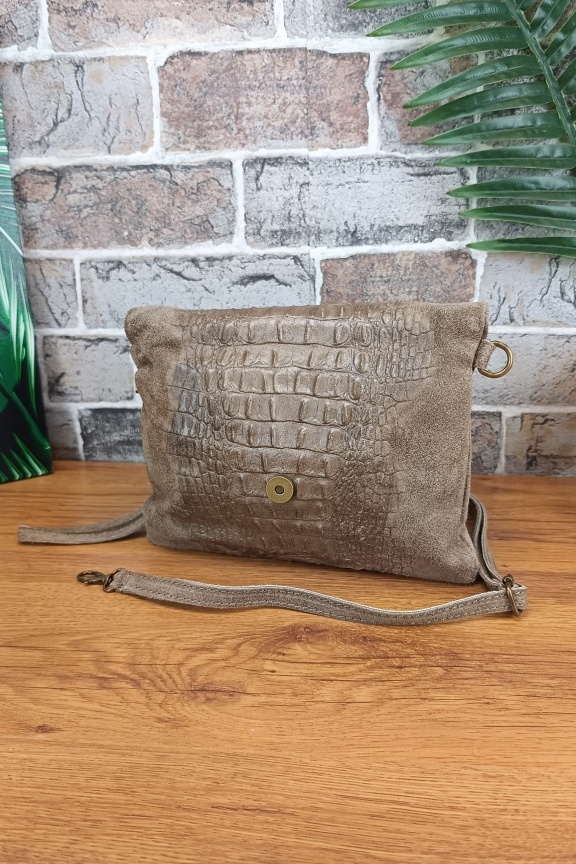 - Οι τσάντες μας που είναι κατασκευασμένες από δέρμα σουέτ (suede) έχουν υποστεί διαδικασία τράχυνσης στην οποία οφείλουν και την εξαιρετική υφή τους. Το δέρμα αυτών των τσαντών είναι εξαιρετικά μαλακό με μεγάλη αντοχή και φυσικά εκλεπτυσμένη όψη και υφή. Θέλουν πολύ μεγάλη προσοχή ώστε να μην έρθουν σε επαφή με υγρά στοιχεία.