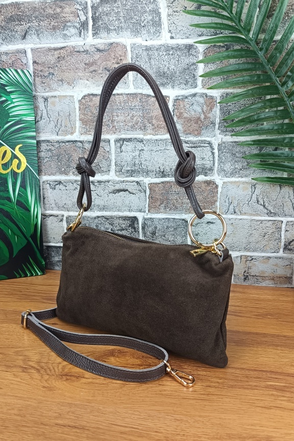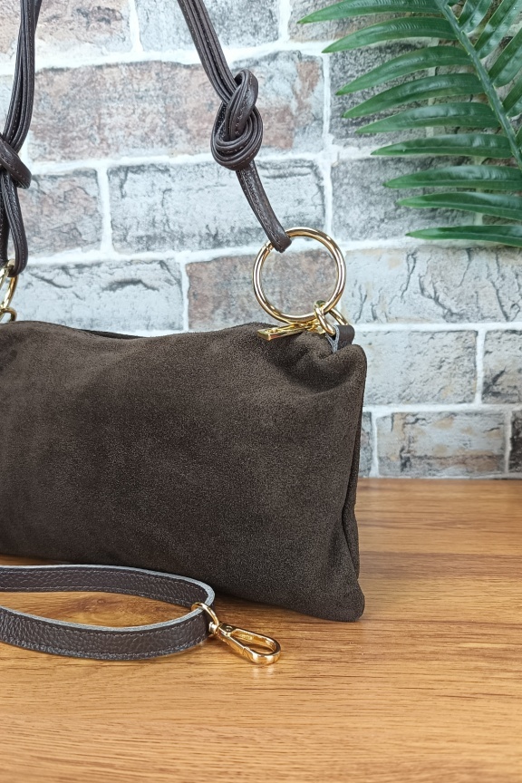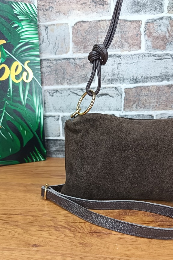 - Οι τσάντες μας που είναι κατασκευασμένες από δέρμα σουέτ (suede) έχουν υποστεί διαδικασία τράχυνσης στην οποία οφείλουν και την εξαιρετική υφή τους. Το δέρμα αυτών των τσαντών είναι εξαιρετικά μαλακό με μεγάλη αντοχή και φυσικά εκλεπτυσμένη όψη και υφή. Θέλουν πολύ μεγάλη προσοχή ώστε να μην έρθουν σε επαφή με υγρά στοιχεία.