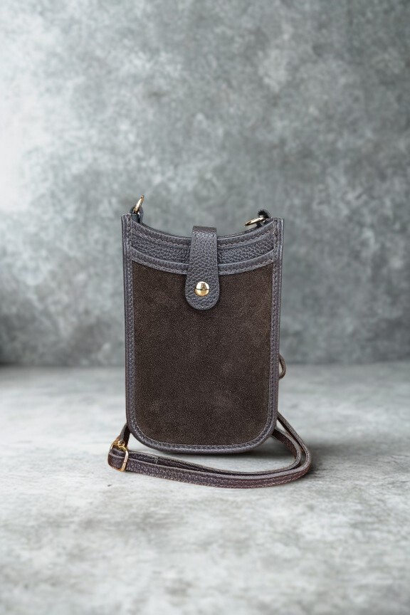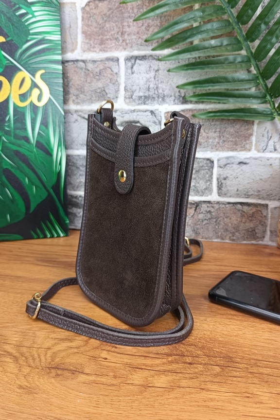 • Ιταλικό δερμάτινο τσαντάκι χιαστί σε ταμπά χρώμα.