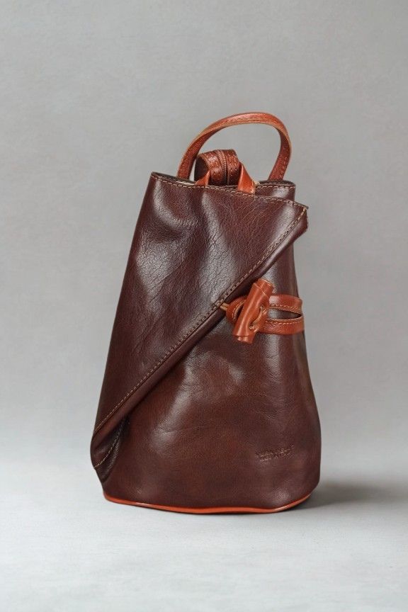 • Χειροποίητο δερμάτινο σακίδιο πλάτης σε καφέ-ταμπά χρώμα.