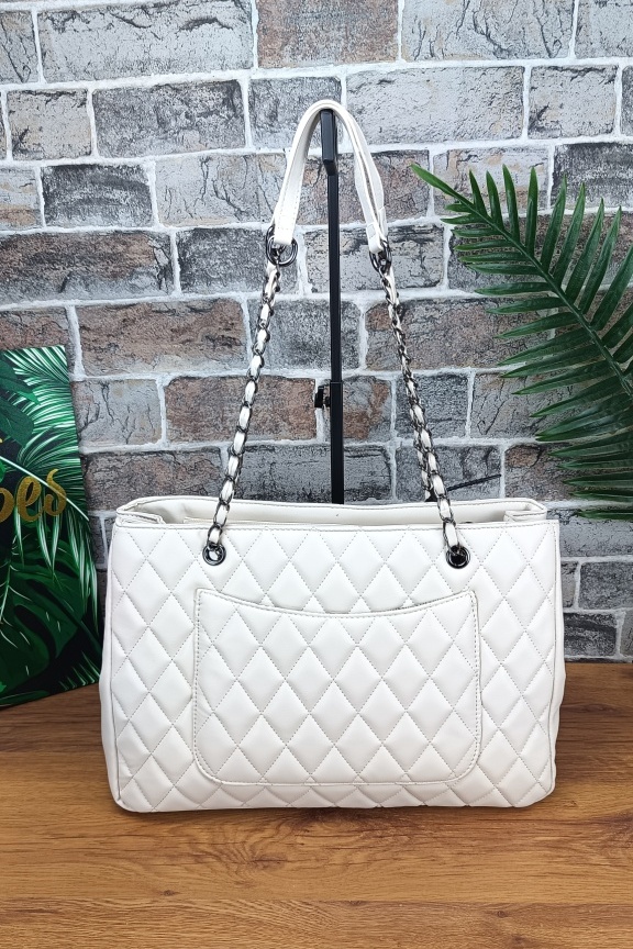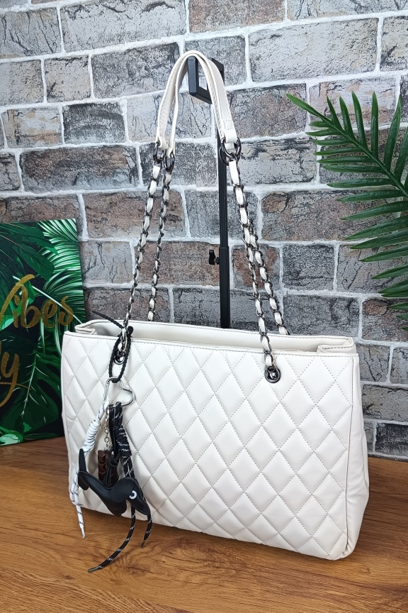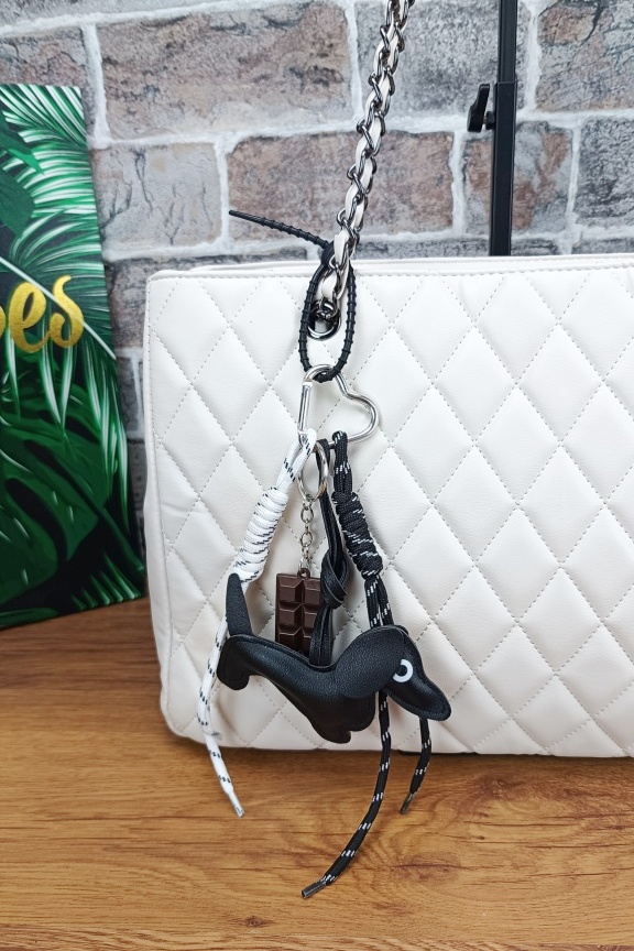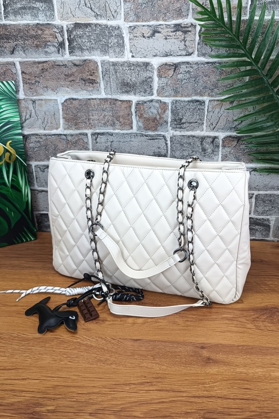 Τσάντα καπιτονέ με μπρελόκ σκυλάκι ‘City Life’ Λευκή