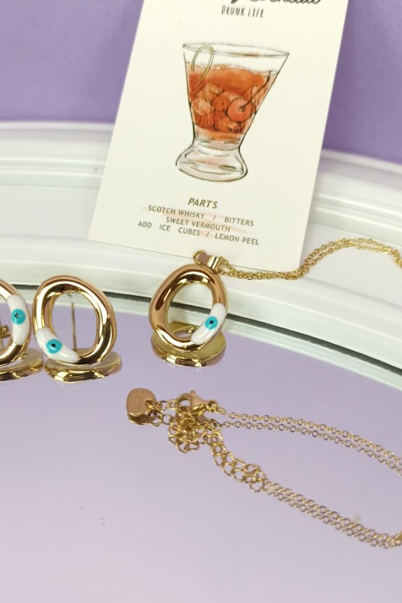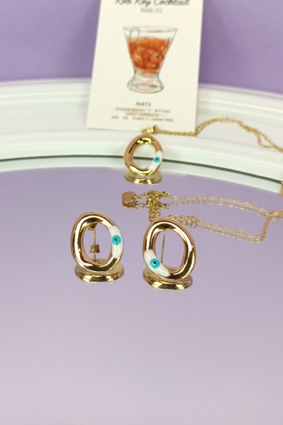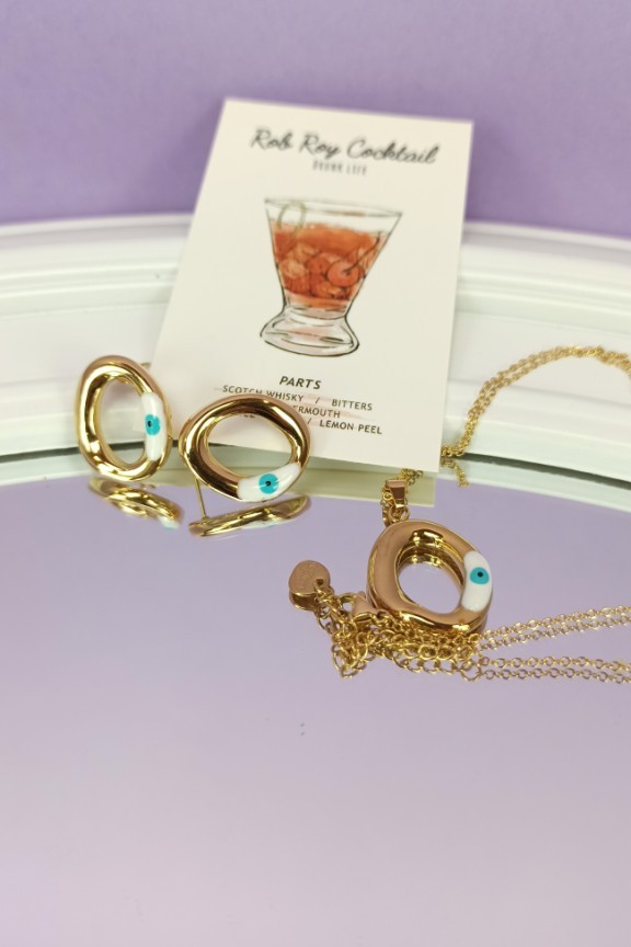 Σετ κολιέ-σκουλαρίκια ματάκι ‘See U Soon’ Χρυσό