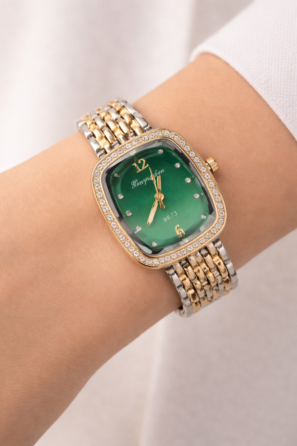 Ρολόι με μπρασελέ διχρωμία ‘Luna’ Πράσινο καντράν