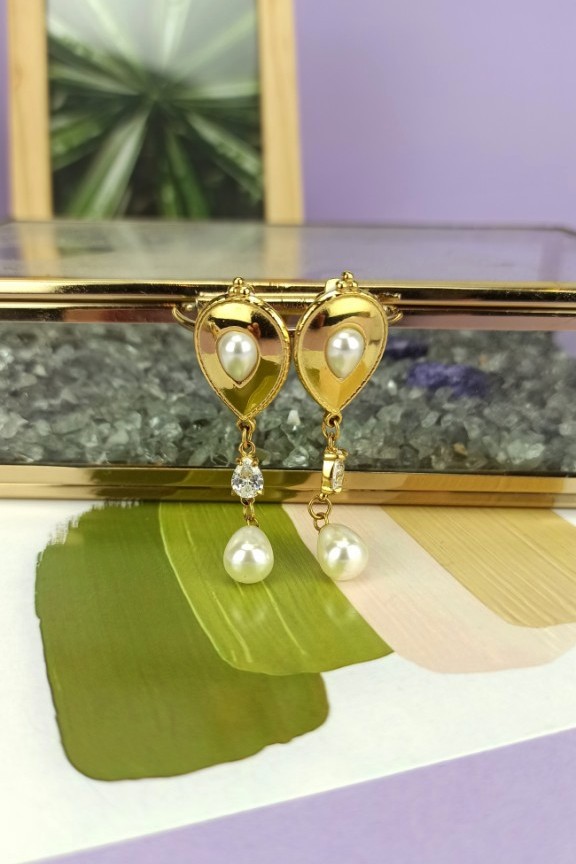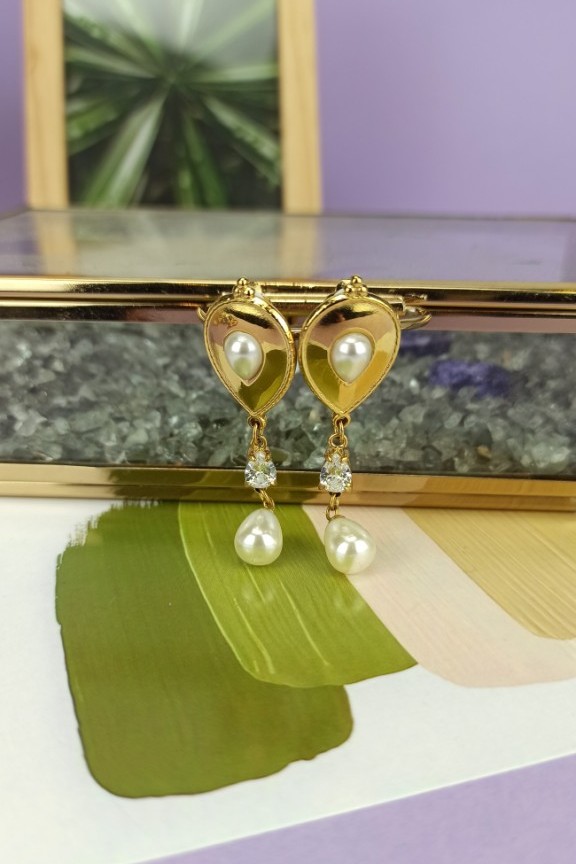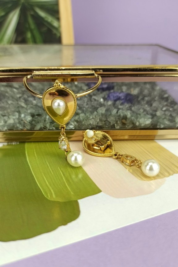 Κρεμαστά σκουλαρίκια με κλιπ και πέρλα ‘Helga’ Χρυσά (Ατσάλι)