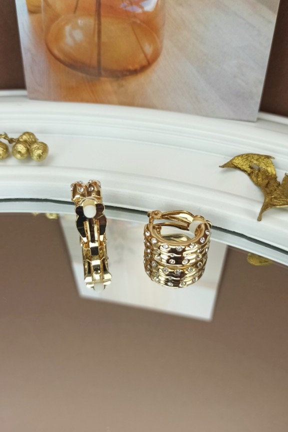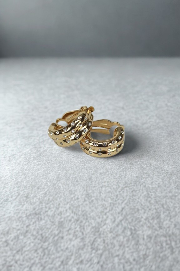 • Ατσάλινα vintage σκουλαρίκια με κλιπ διακοσμημένα με στρασάκια σε χρυσό χρώμα.
