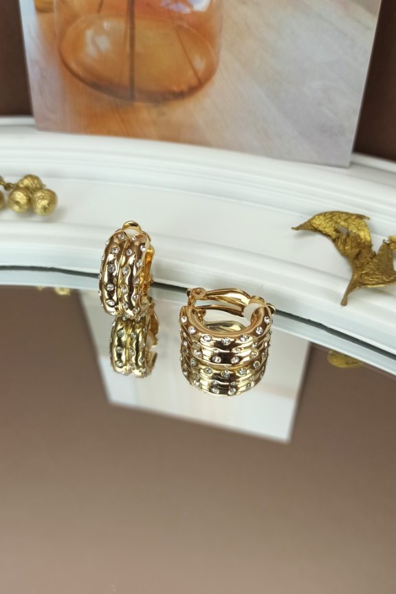 Σκουλαρίκια με κλιπ και στρασάκια ‘Frea’ Χρυσά (Ατσάλι)
