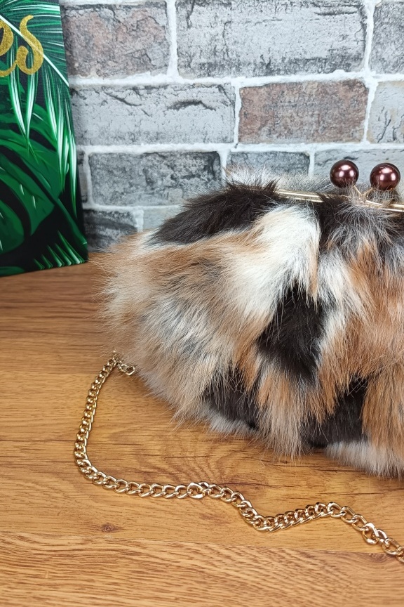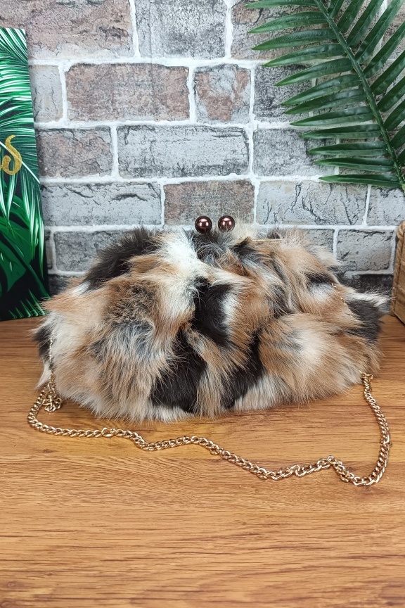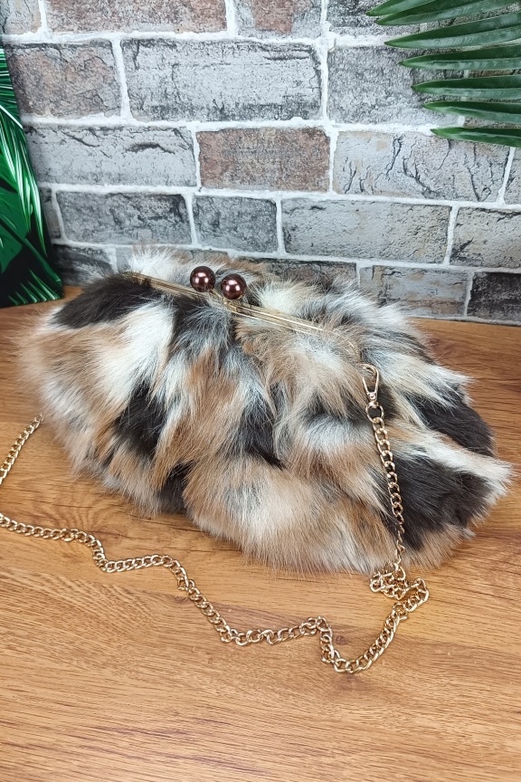 Τσάντα clutch γούνα τριχρωμία ‘Fluffy friend’