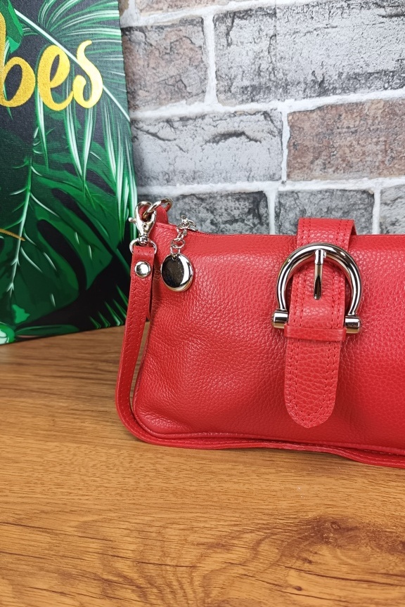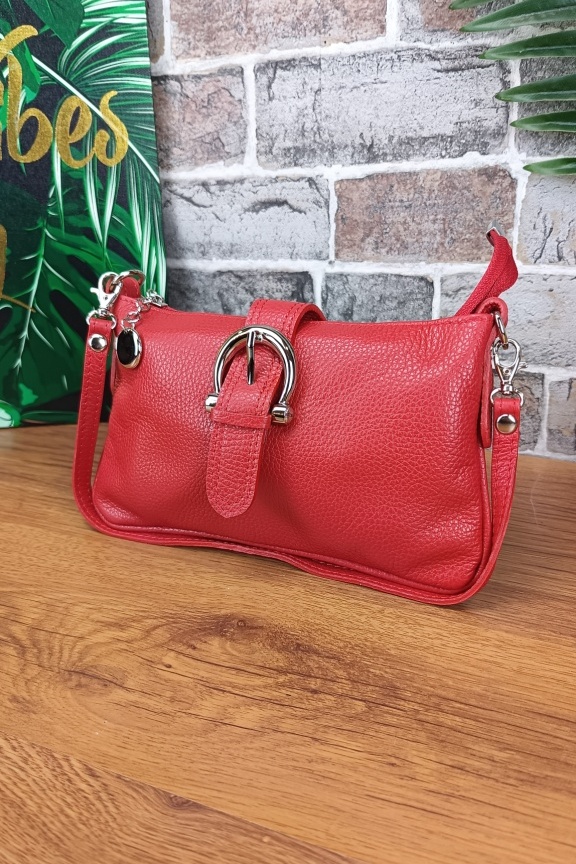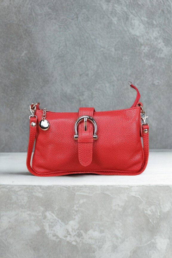 • Χειροποίητη δερμάτινη τσάντα με μεγάλη πόρπη σε κόκκινο χρώμα.