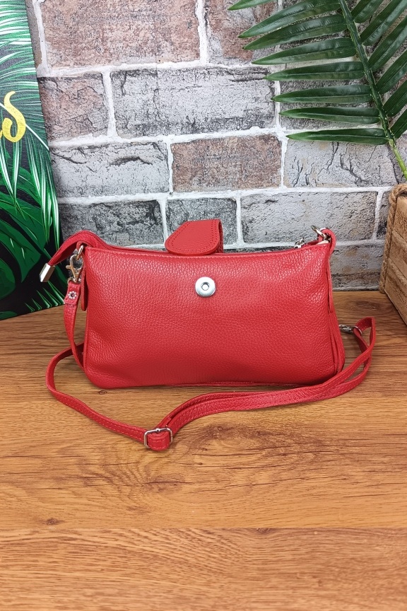 Δερμάτινη τσάντα με πόρπη ‘Mirto’ Κόκκινη