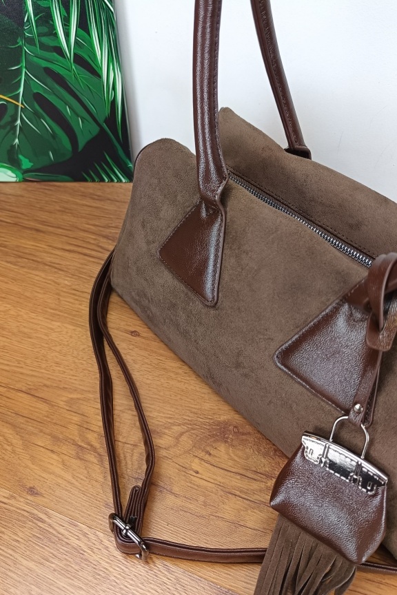 Αφαιρούμενο λουράκι ώμου από δερματίνη σε καφέ χρώμα ρυθμιζόμενου μήκους (μέγιστο 120cm).