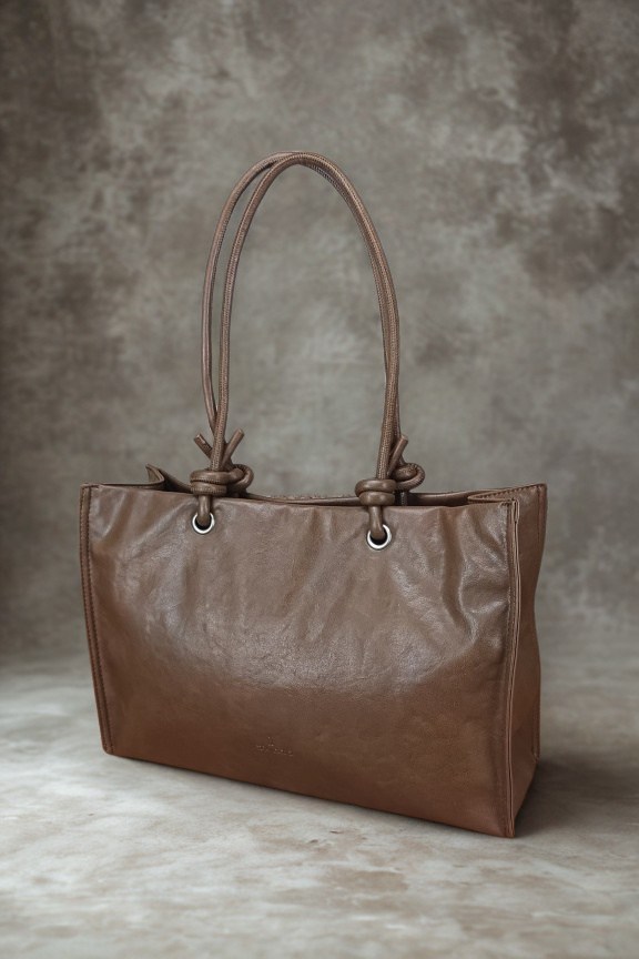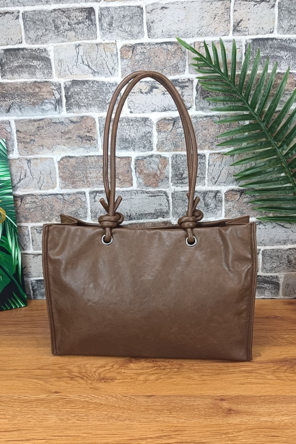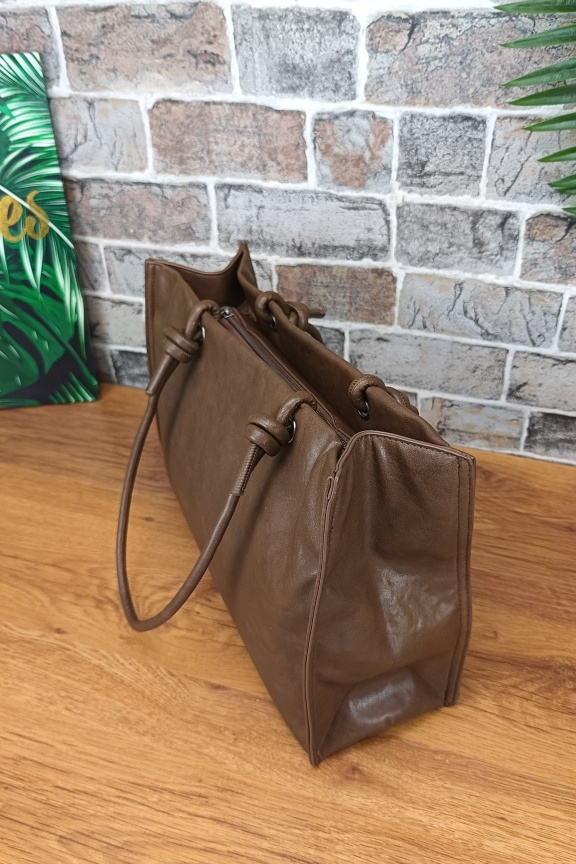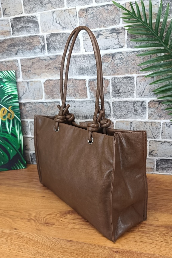 • Τσάντα με χειροποίητα λουράκι ώμου στο χρώμα του πούρου.