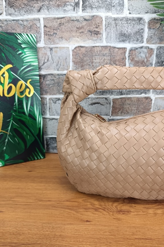 Τσάντα πλεκτή με στριφτή λαβή ‘Serenity’ Nude