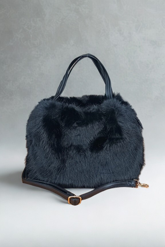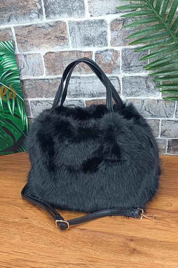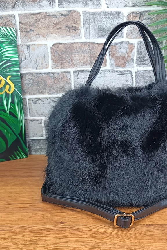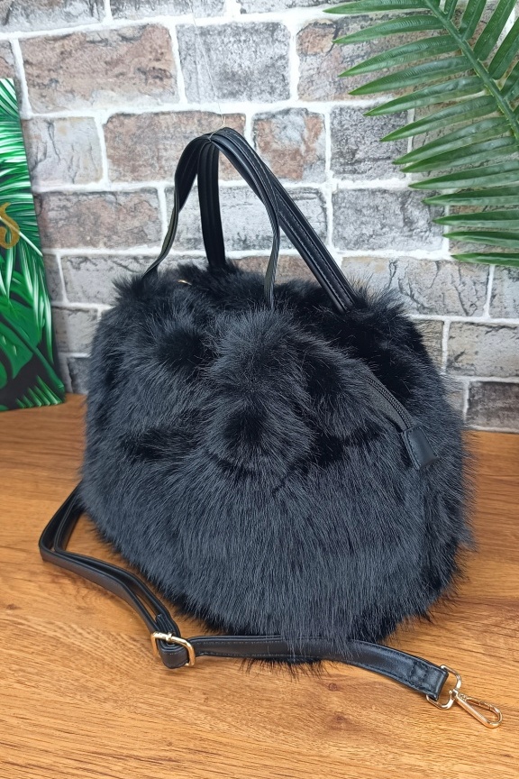 Τσάντα χιαστί γούνα ‘Siberia’ Μαύρη