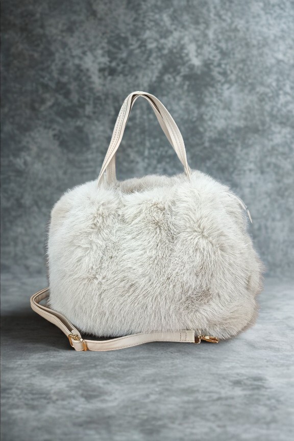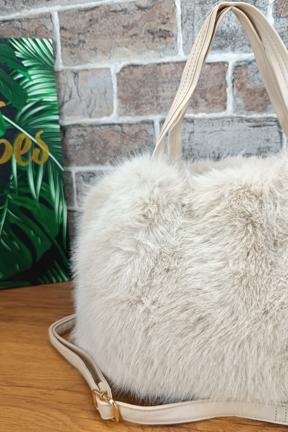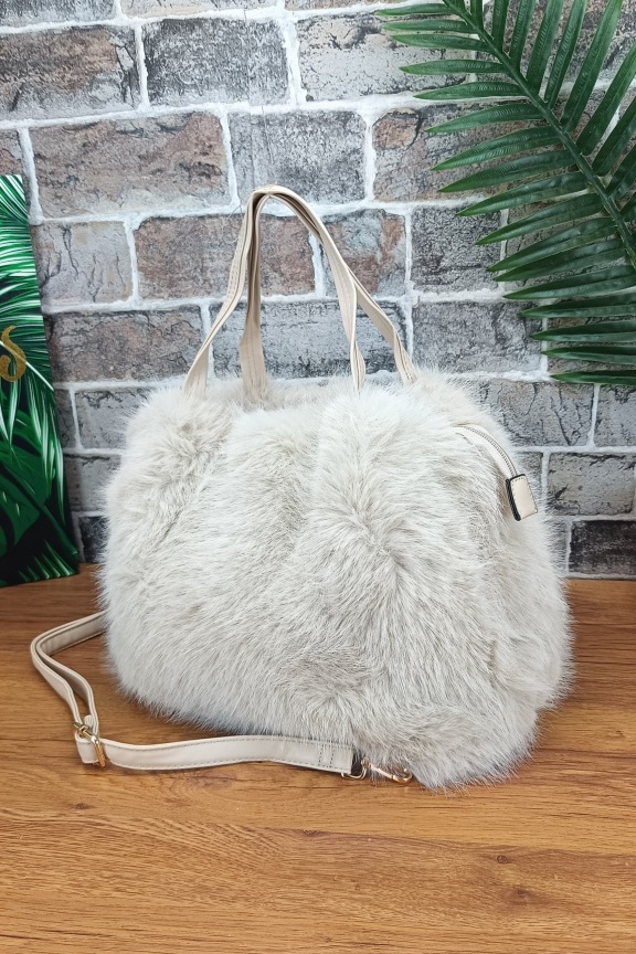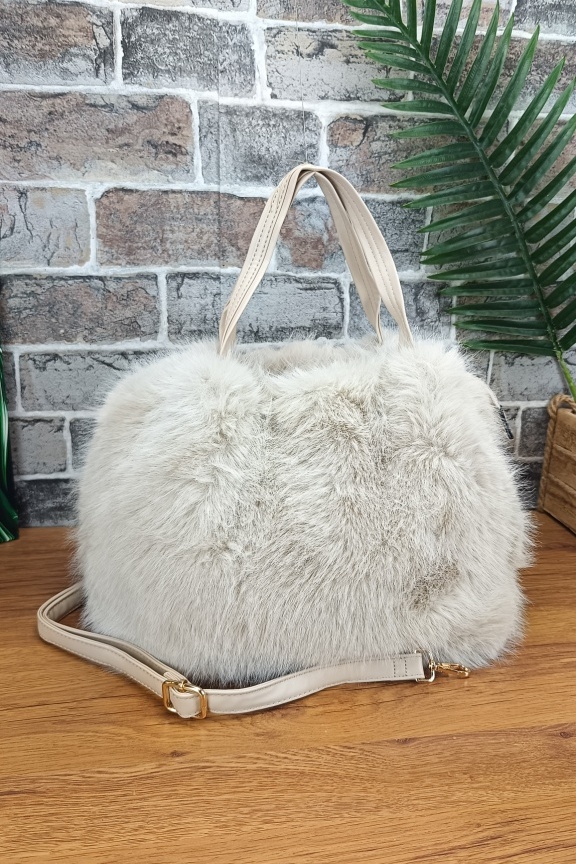 Τσάντα χιαστί γούνα ‘Siberia’ Εκρού