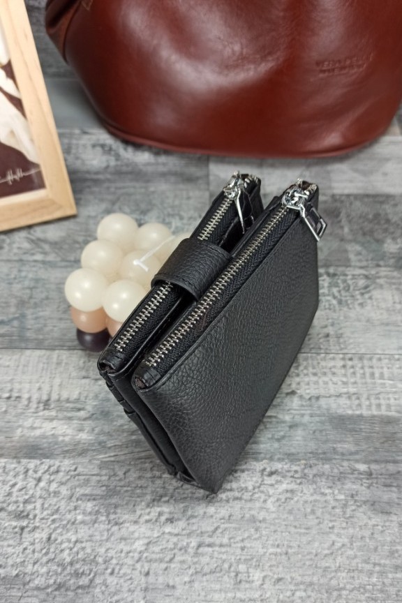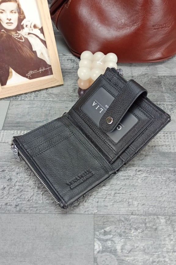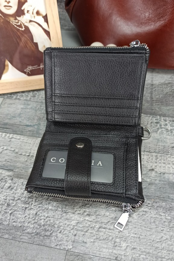 • Δερμάτινο πορτοφόλι με πολλές θήκες σε μαύρο χρώμα.