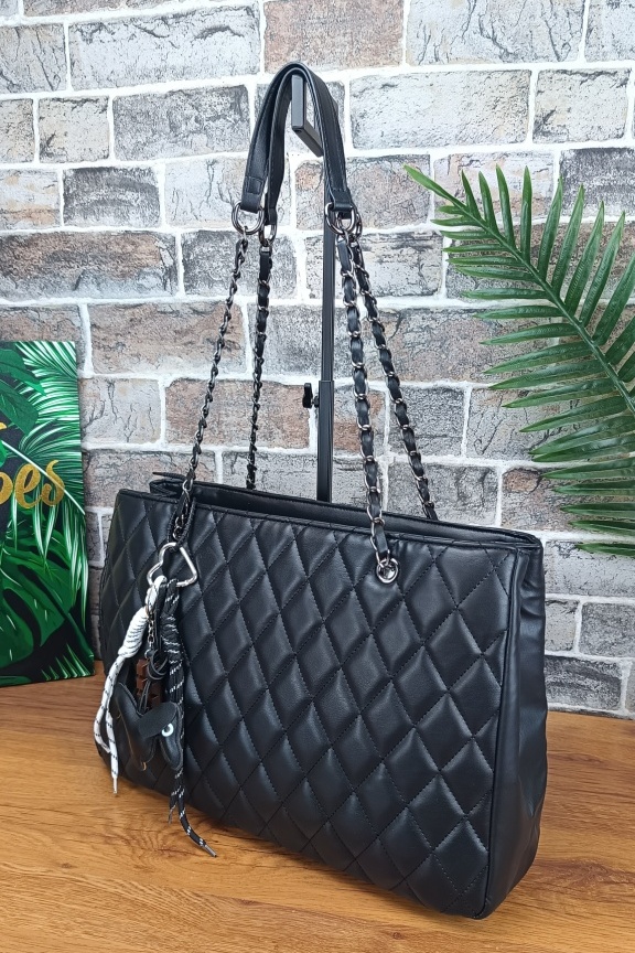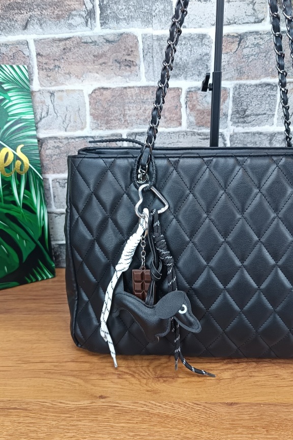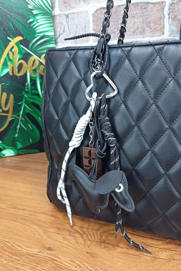 Τσάντα καπιτονέ με μπρελόκ σκυλάκι ‘City Life’ Μαύρη