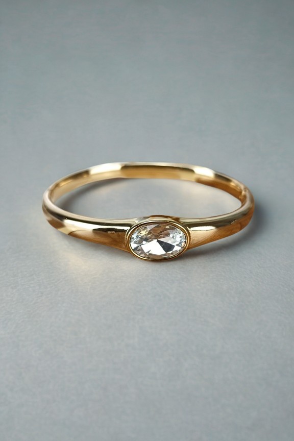 • Γυναικείο βραχιόλι χειροπέδα με εντυπωσιακό διάφανο κρύσταλλο σε χρυσό χρώμα.