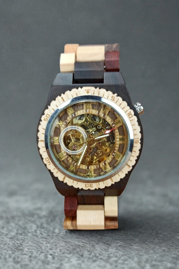 Αυτόματο Ξύλινο Ρολόι ‘Wooden Dream’ με πολύχρωμο μπρασελέ