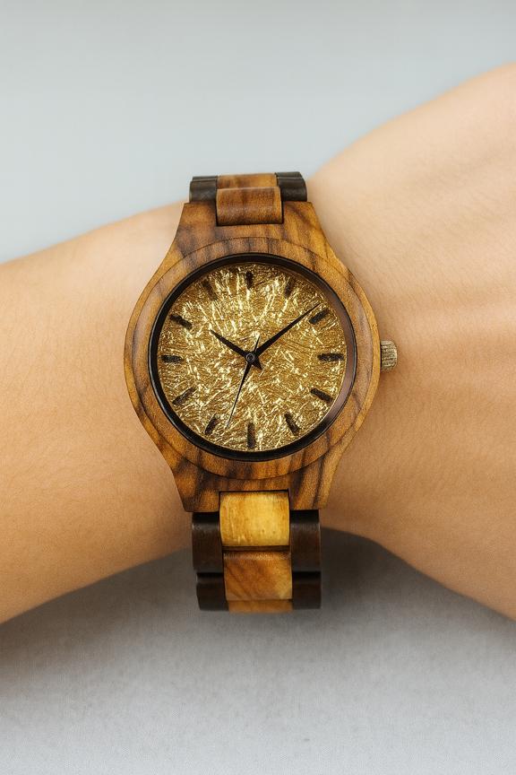 Ξύλινο ρολόι ‘Gold Digger’ με ξύλινο μπρασελέ (μικρό)